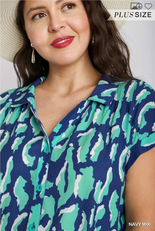 Animal print high low hem button down shirt