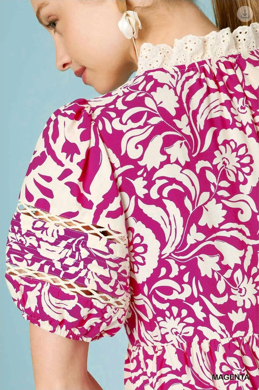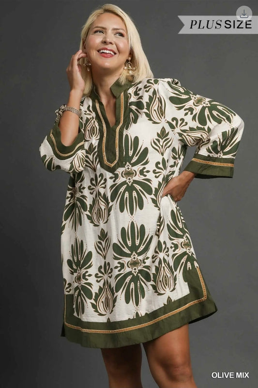 Baroque floral tunic dress with gold trim