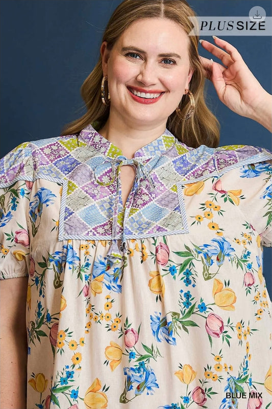 Green v neck 3/4 sleeves hi low tunic plus size top